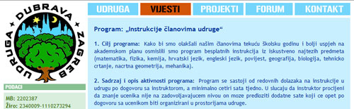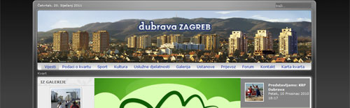 URL: www.dubrava.hr Tehnology: CMS, HTML, PHP, CSS, MySQL, JavaScript, SEO Workplace: Freelancing Description: this page was made as pilot project and it has grown huge ever since, complete project had one major redesign done that included CMS upgrade and data migration