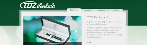 URL: www.toz-penkala.hr Tehnology: HTML, PHP, CSS, JavaScript, SEO Workplace: Spotstudio Description: Tvornica olovaka Zagreb, pen and pencil factory in Zagreb, presentation site, I was working on this page as programmer