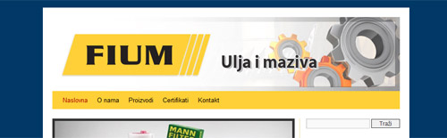 URL: www.fium.hr/ Tehnology: CMS, HTML, PHP, CSS, JavaScript, SEO Workplace: Spotstudio Description: Products presentation website for oil and grease import company.